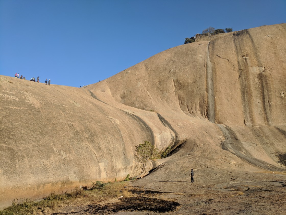 Then, an opportunity came up. A group of friends decided to visit the fort and the surrounding areas as a day trip. Two different types of rappelling activities were planned at Bhongir Fort … one for the kids under 12 (100 ft) and one for over 12 (300 ft). We arrived at the fort by 7 am. The younger kids completed the rappelling first. It was really cool to see them try this new activity.