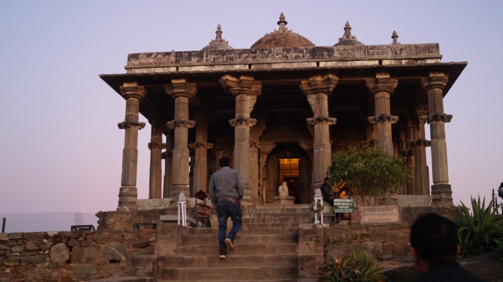 shiva temple inside kumbhalgarh fort at sunset