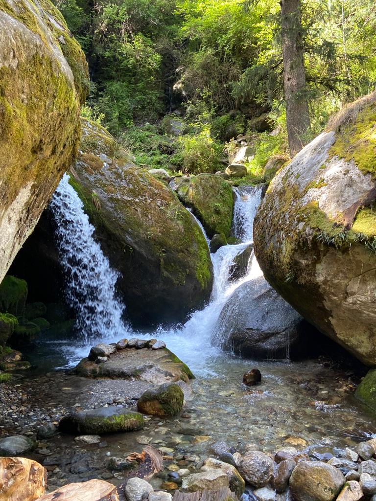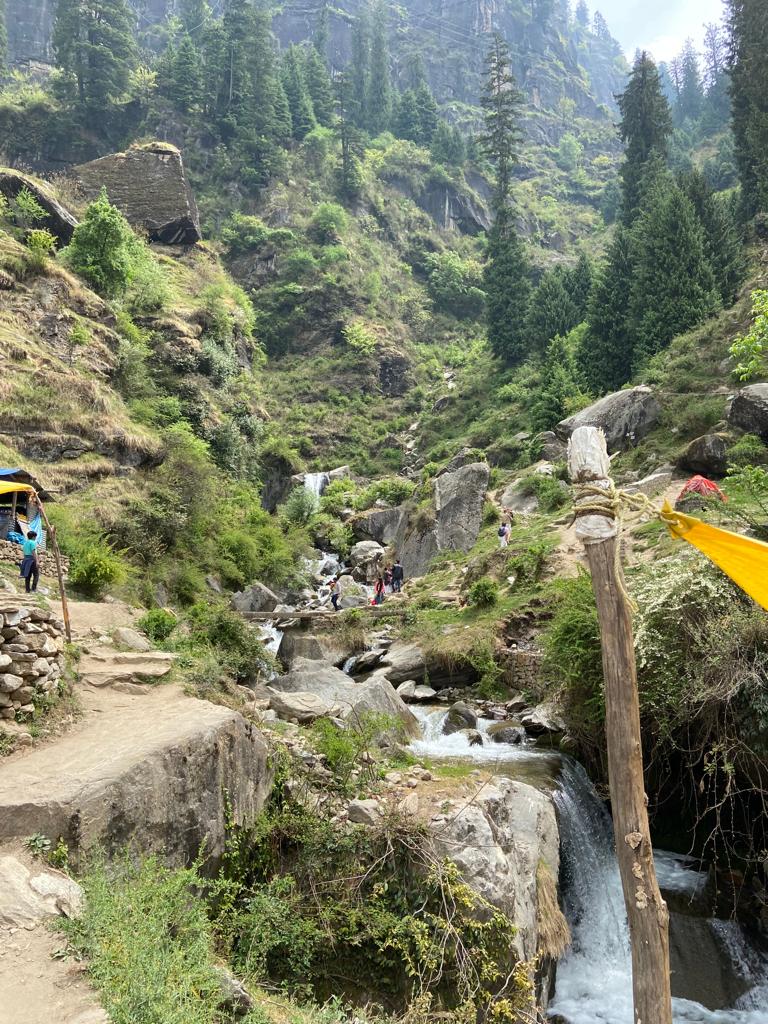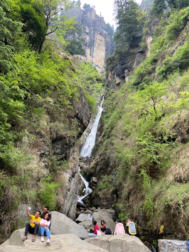 By now, all of us had gotten used to waking up to gorgeous sunrises followed by a yummy breakfast at The Green Mountain Lodge. Our first stop that day was the village of Majhach perched high up in the mountains. Driving there sitting in our tempo traveller was an adventure in itself. Once we reached the village, we were able to see sweeping views of the Manali valley below along with watching how villagers live a simple life. After spending some time there, we headed to our next stop, Jogini Falls.