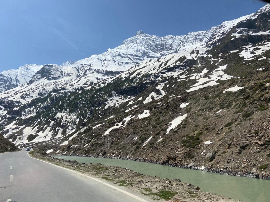 During the last time we had visited Manali, the Atal Tunnel was still under construction. It was a pleasure driving through it to reach Sissu. As promised, the views on the other side of the tunnel were spectacular. Unfortunately for us, most of the snow had melted, but, nonetheless, the views were beautiful. We drove all the way up to Tandi and after soaking in the views, we headed back to Sissu for lunch. We decided to check out the adventure activities by the river and the children ziplined their way to the other side of the River Chandra (Chenab). With views of the Palden Lhamo dhar waterfall in front, the experience was surreal. There was some snow on the other side, so the kids played for a bit before ziplining back to us.