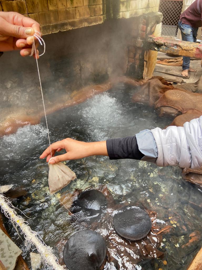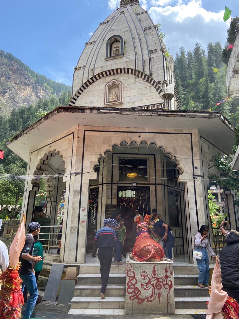 At the Shiva temple, we noticed a small pond where the water from the hot springs was accessible. It was at this place where the food we ate at the langar was cooked. How cool! Many people bought small bags of lentils tied in cloth and tried to cook them in the hot water. I touched the water just to see how hot it was… the visible steam *should* have been an indicator… it was super hot! We then entered the small temple and paid our respects. As we walked around the temple, we could see the hot springs spouting steam on the banks of River Parvati. It was a fascinating sight to see.