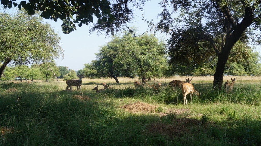 The next morning, we started off at 5:15am for the jeep safari in the core zone. In order to start the safari, we first had to cross the Tawa reservoir by boat. Once on the other side, we got into the jeep and began our safari. During the safari we came across many deer, Indian gaur (bison), fox, etc. We noticed fresh pugmarks but unfortunately no tiger sightings. Since it was after the monsoon, the forest was full of life and there was plenty of thick greenery around. It was not surprising that the animals had plenty of places to hide and stay out of sight. At one point during the safari, our guide stopped by the river so we could explore the rocks nearby. We noticed a few crocodiles in the river and on the banks enjoying the morning sun. After spending some time traversing the core zone of the Satpura National Park Madhai, we returned back to the resort to enjoy a good breakfast and relax for a bit. Around noon we headed to our next stop.