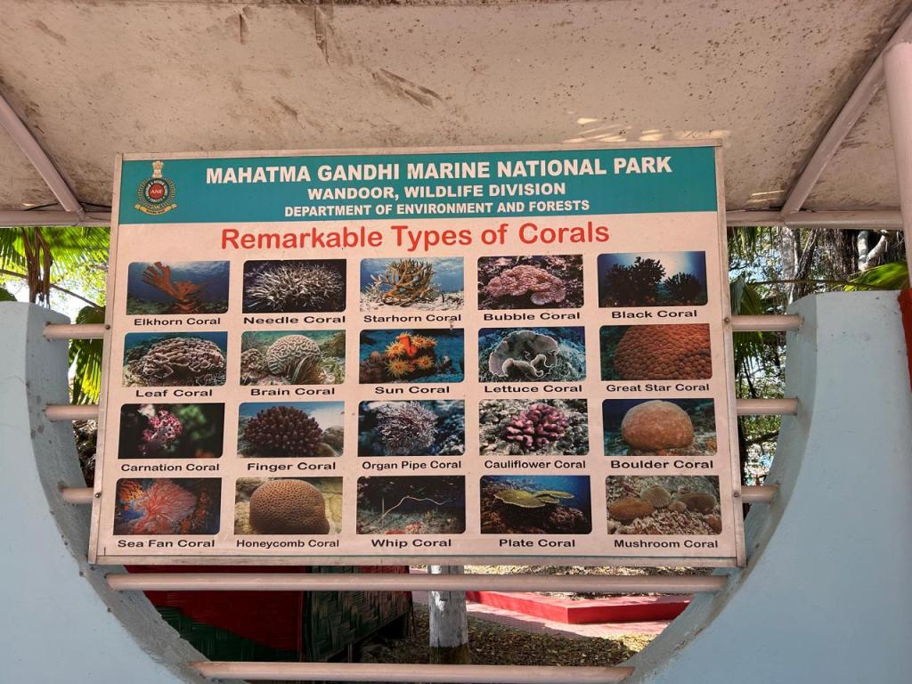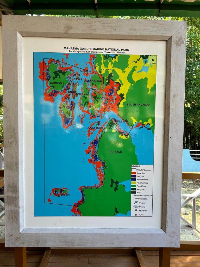 The next day we decided to check out Jolly Bouy Island (open some months of the year, the rest of the year folks go to Red Skin Island). Right after we decided to cancel the Baratang trip, we purchased the Jolly Bouy Island tickets. We reached Wandoor before the check-in time. We had an opportunity check out the Mahatma Gandhi Marine National Park museum there before boarding the jetty from there to Jolly Bouy Island. As far as we could tell, only two ferries travel from Wandoor to Jolly Bouy Island every day. The timings are set and are strictly adhered to.
